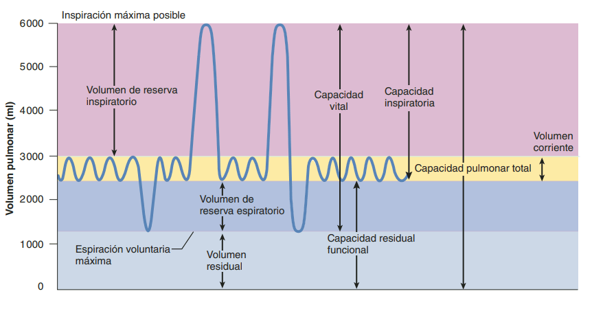 un diagrama que relaciona los cambios del volumen pulmonar con los cambios de la