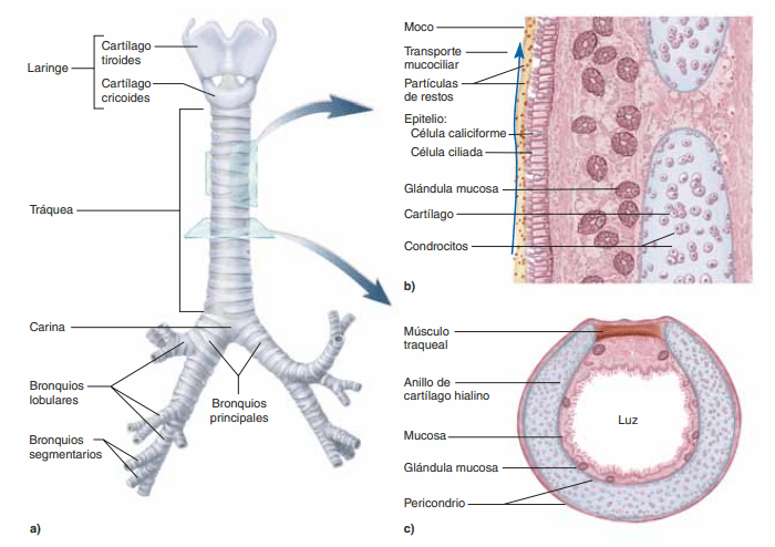 razonable, aunque permiten un movimiento suficiente para que los pulmones se expandan y se contraigan. Estas placas se hacen cada vez menos extensas en las últimas generaciones de bronquios y han desaparecido en los bronquíolos, que habitualmente tienen diámetros inferiores a 1,5 mm. No se impide el colapso de los bronquíolos por la rigidez de sus paredes. Por el contrario, se mantienen expandidos