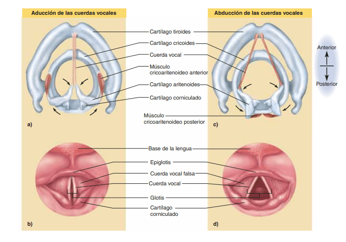El habla implica no solo al aparato respiratorio, sino también a: 1) centros específicos de control nervioso del habla de la corteza cerebral, que se analizan en el capítulo 58; 2) centros de control respiratorio del encéfalo, y 3) las estructuras de articulación y resonancia de las cavidades oral y nasal. El habla está formada por dos funciones mecánicas: 1) fonación, que se realiza en la laringe, y 2) articulación, que se realiza en las estructuras de la boca